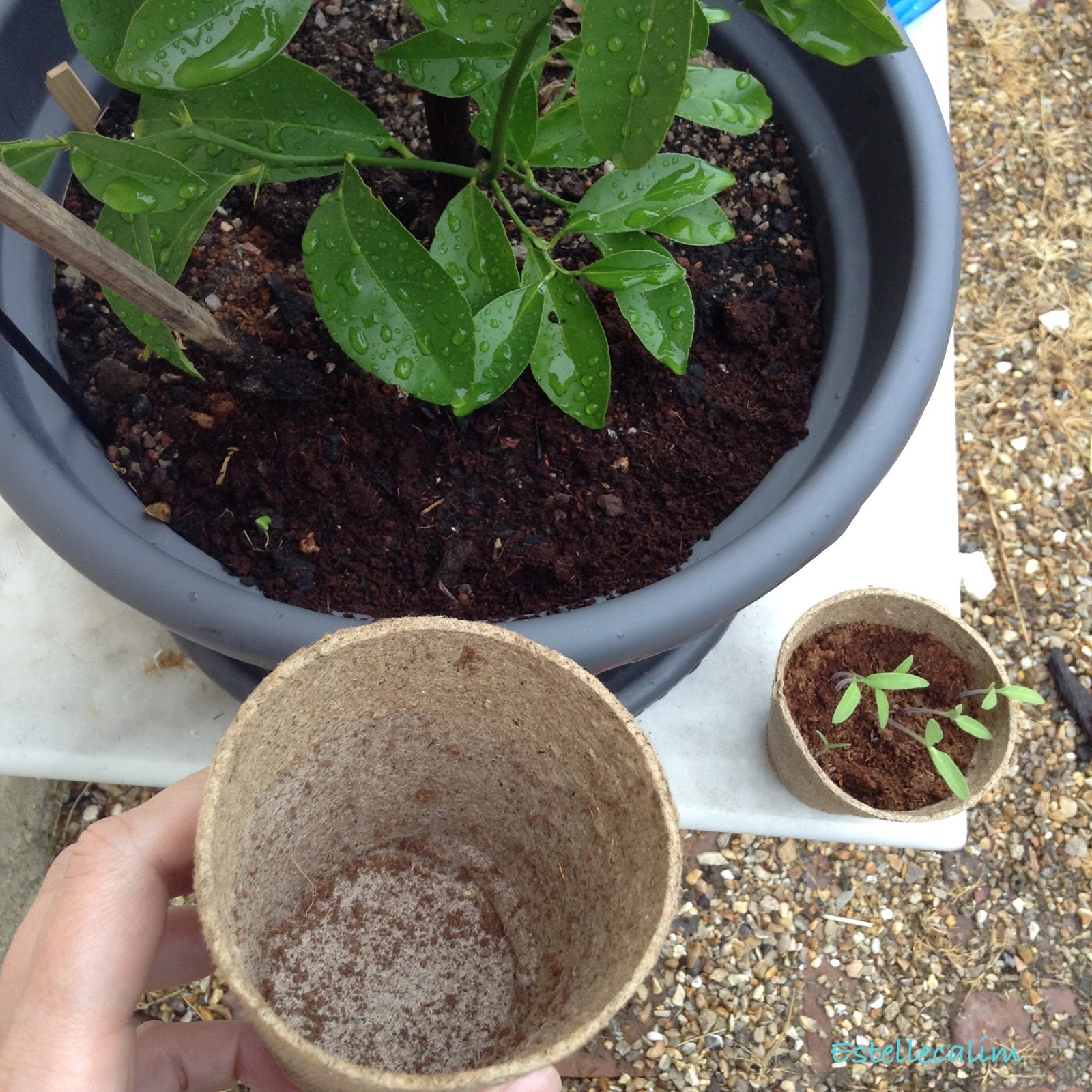 A peine avons-nous tourné le dos qu'elle a versé un pot de semis de tomates dans le pot de l'oranger.